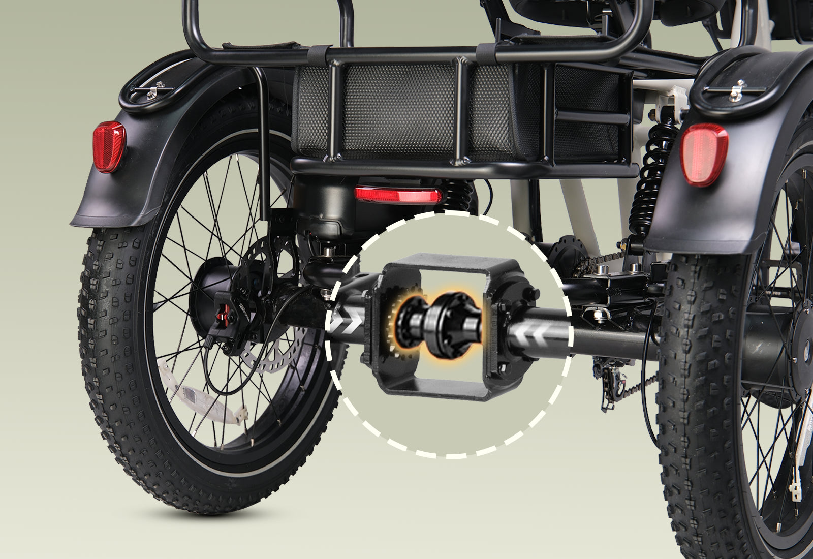 • Speed Differential: Different rear wheel speeds for smooth, stable cornering.
